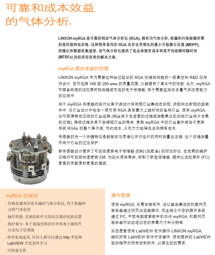 LINXON myRGA 是一種可靠的低價格 RGA, 旨在以具有競爭力的價格滿足普通真空和科研市場的性能, 集成和支持需求.